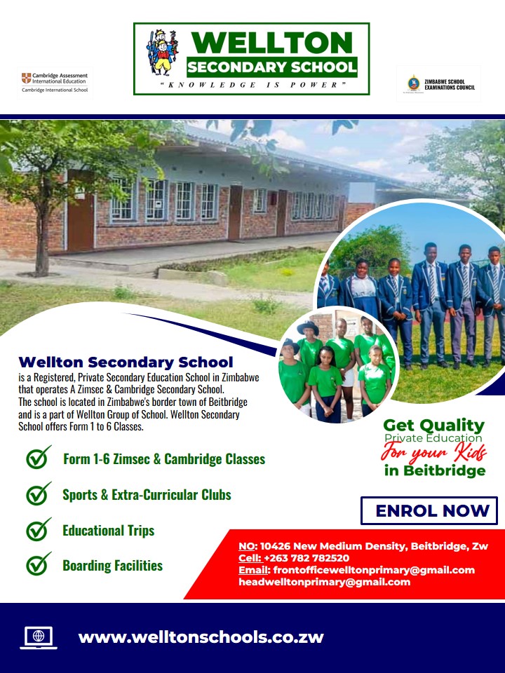 Wellton Secondary School is a registered, Zimbabwean Educational Institution that is part of the Wellton Group of Schools. The school is located in Zimbabwe's southern border town of Beitbridge. Wellton Secondary School offers Zimsec & Cambridge classes from Form 1 to 4.